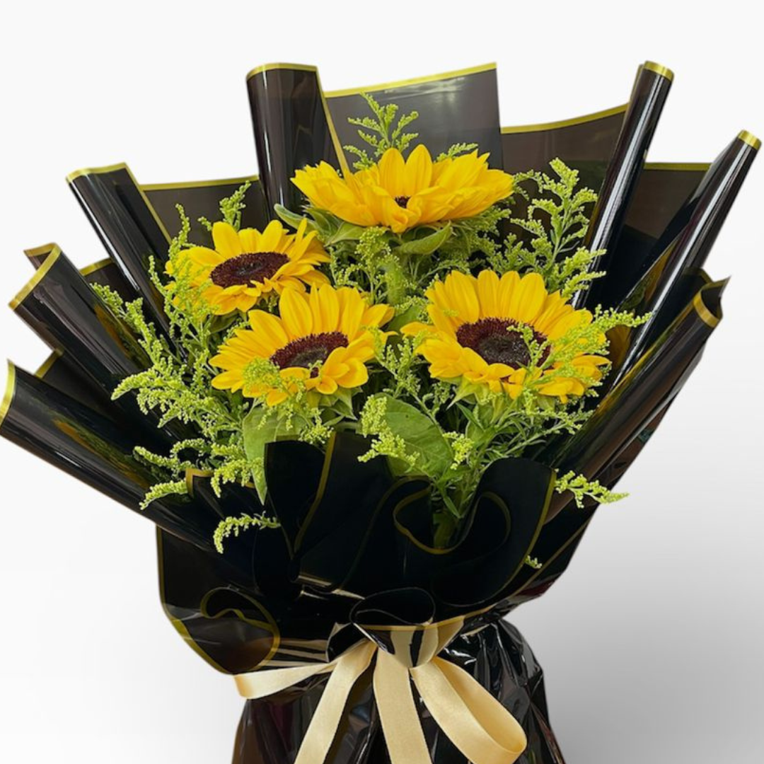 Buquê Coreano Linha Premium com 4 Girassóis