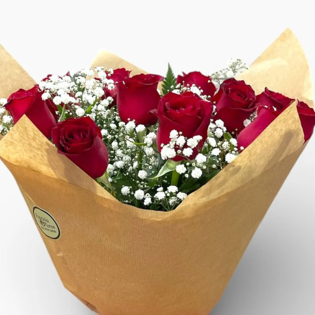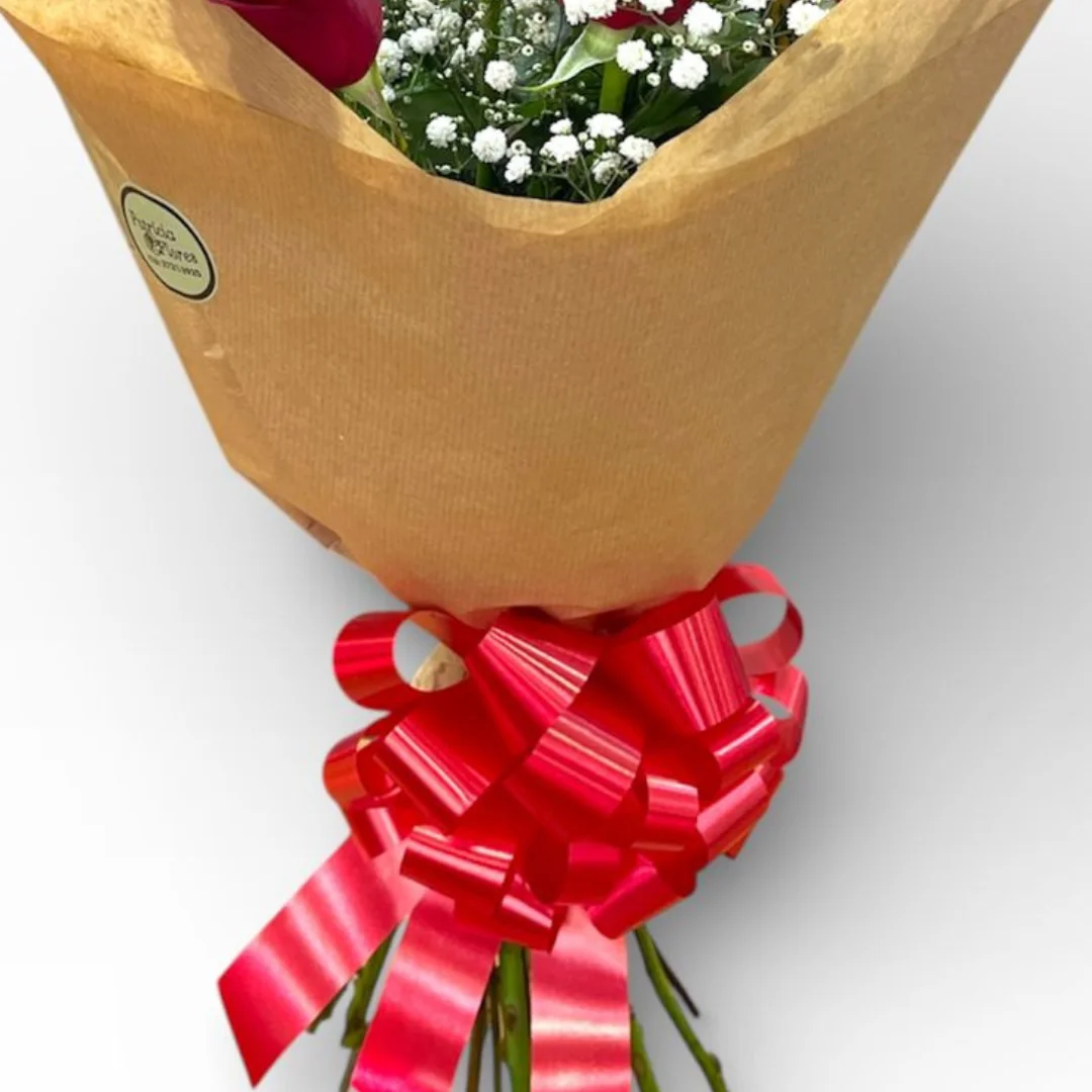Buquê de Rosas Tradicional com 12 Unidades Embalagem Papel Kraft